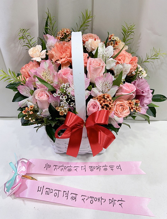 깔끔하고 풍성한 꽃바구니네요