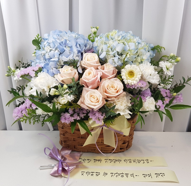 수국 장미 바구니