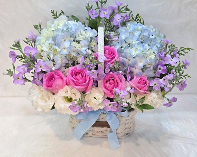 수국 장미 바구니