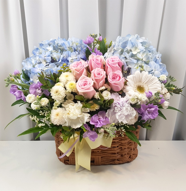 수국 장미 바구니