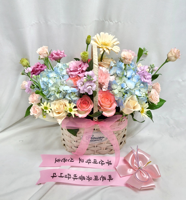 수국 장미 바구니