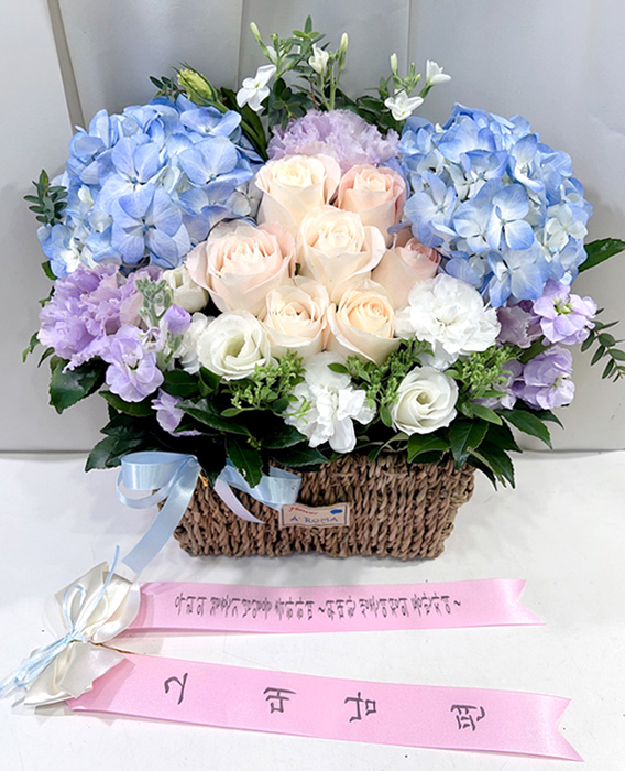 수국 장미 바구니
