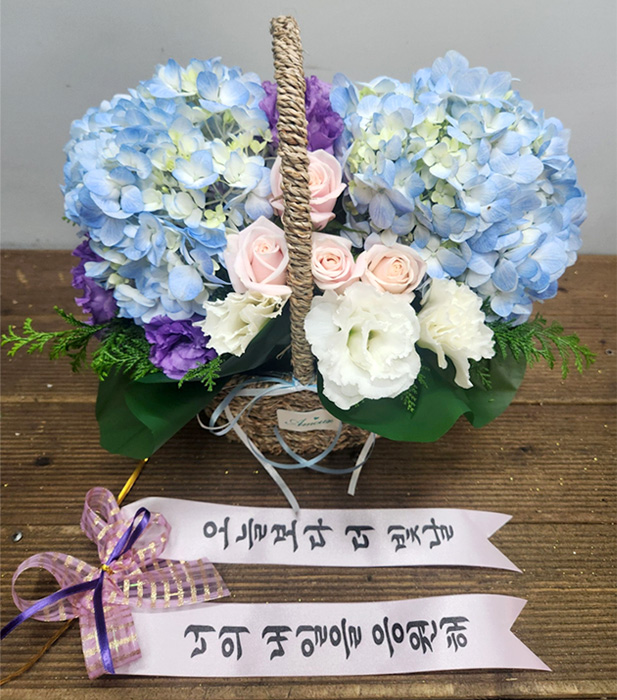 수국 장미 바구니