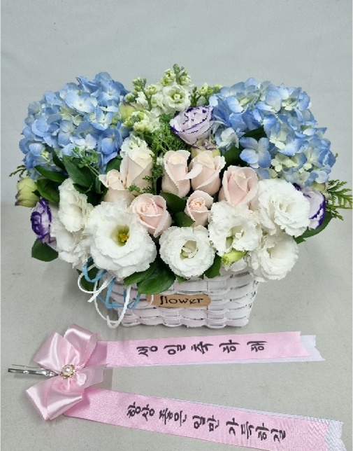 수국 장미 바구니