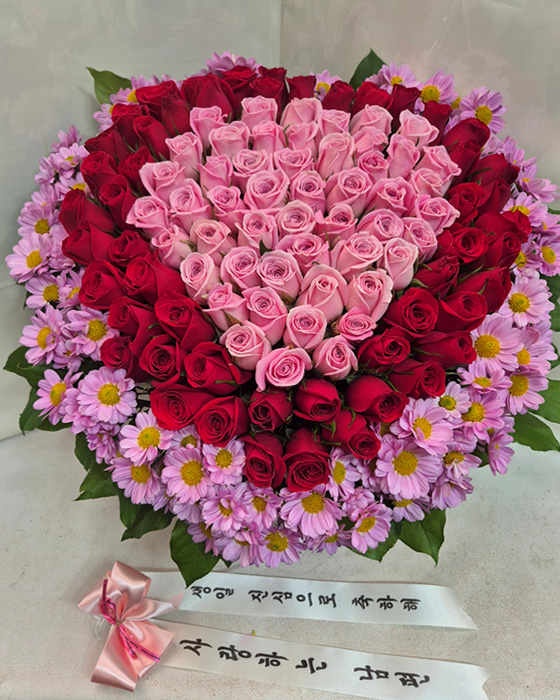 핑크 100송이 하트꽃바구니