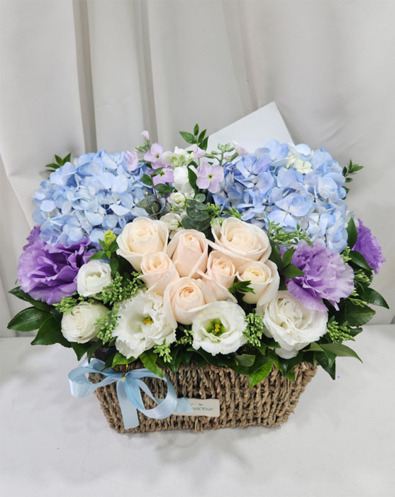 수국 장미 바구니