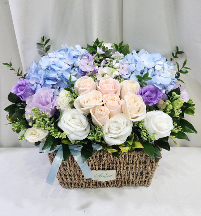 수국 장미 바구니