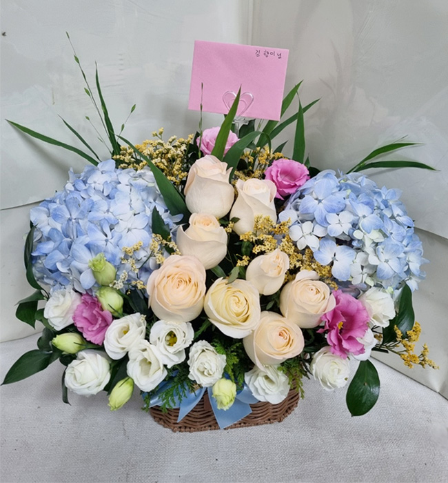 수국 장미 바구니