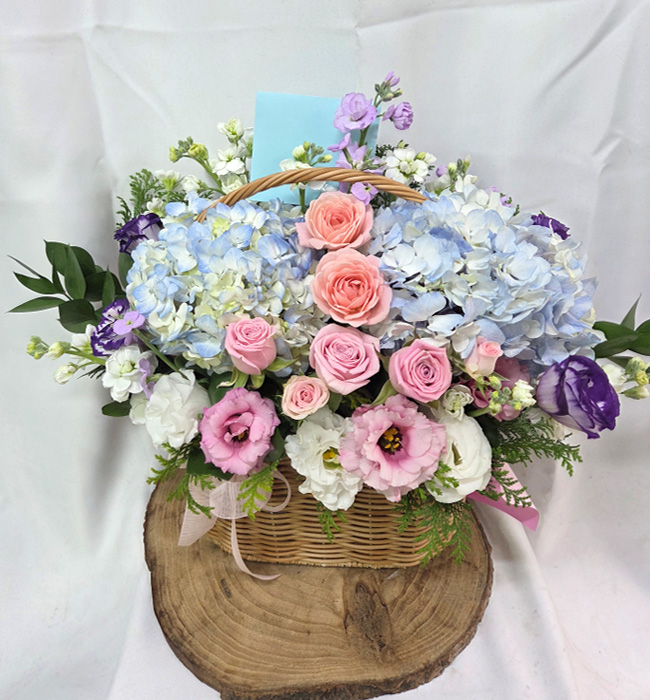 수국 장미 바구니