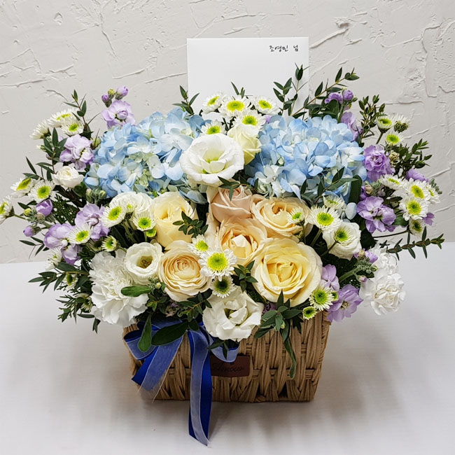 수국 장미 바구니