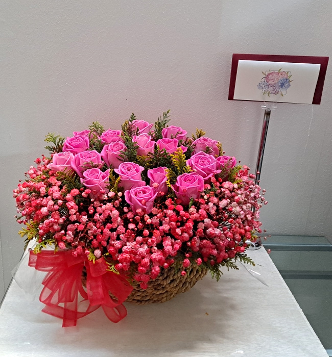 TV소개된 그 칼라안개와 핑크장미 꽃바구니