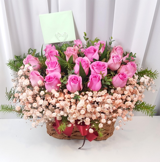 TV소개된 그 칼라안개와 핑크장미 꽃바구니