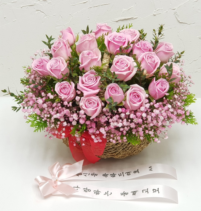 TV소개된 그 칼라안개와 핑크장미 꽃바구니
