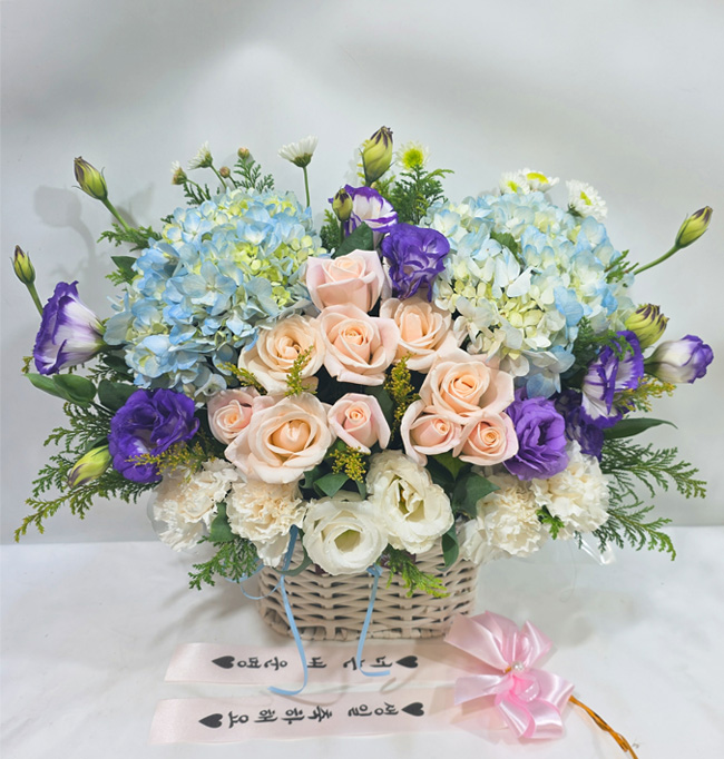 수국 장미 바구니