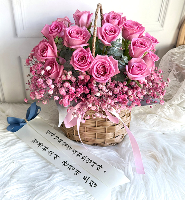 TV소개된 그 칼라안개와 핑크장미 꽃바구니