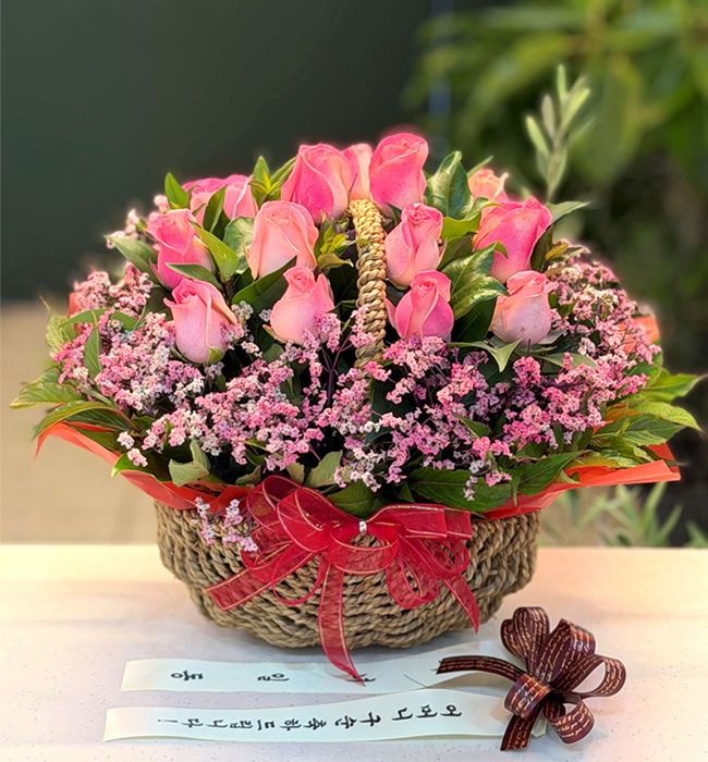 TV소개된 그 칼라안개와 핑크장미 꽃바구니