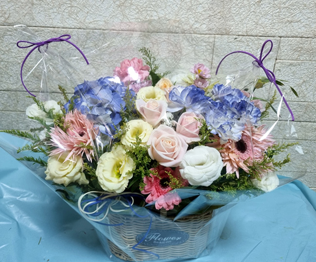 수국 장미 바구니