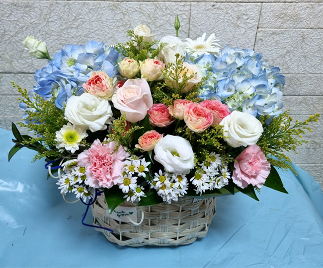 수국 장미 바구니