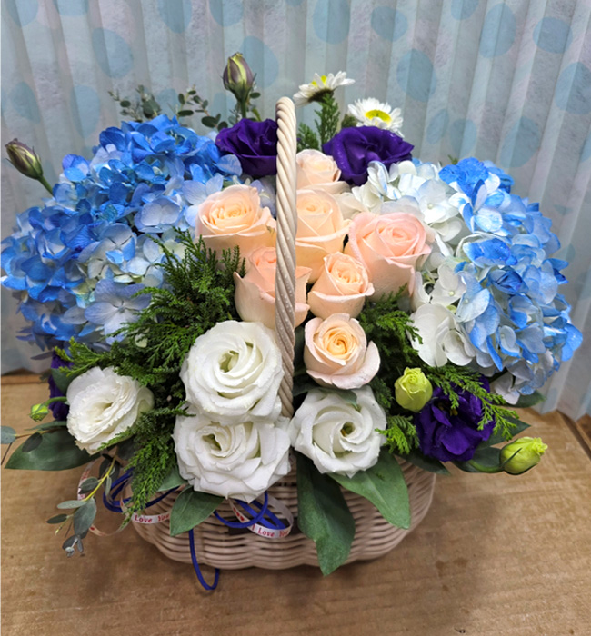 수국 장미 바구니