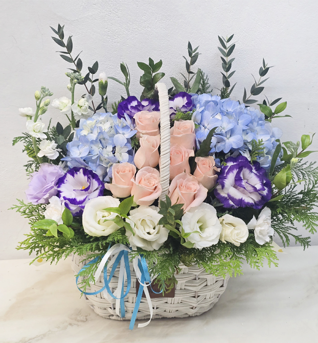 수국 장미 바구니