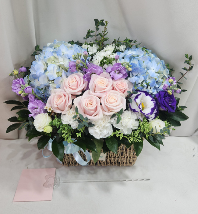 수국 장미 바구니