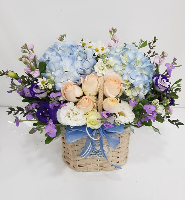 수국 장미 바구니