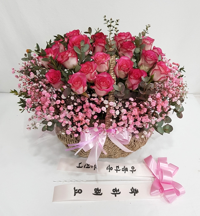 TV소개된 그 칼라안개와 핑크장미 꽃바구니