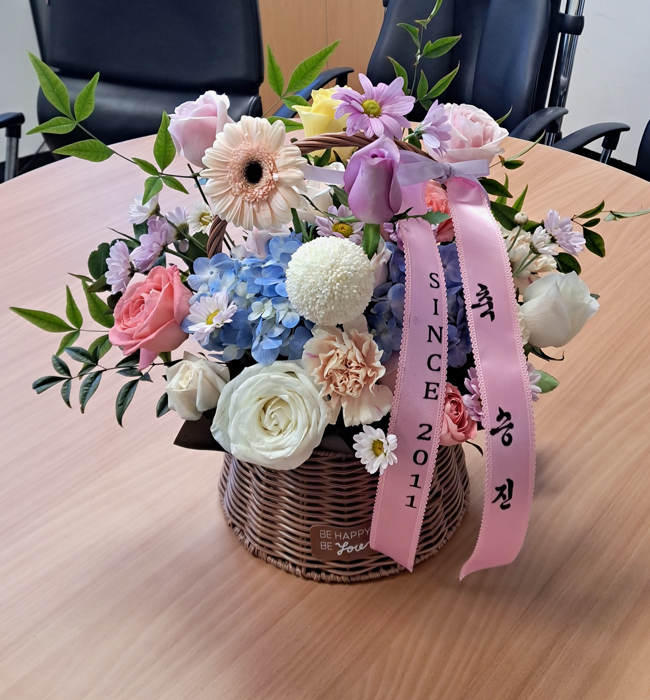 수국 장미 바구니