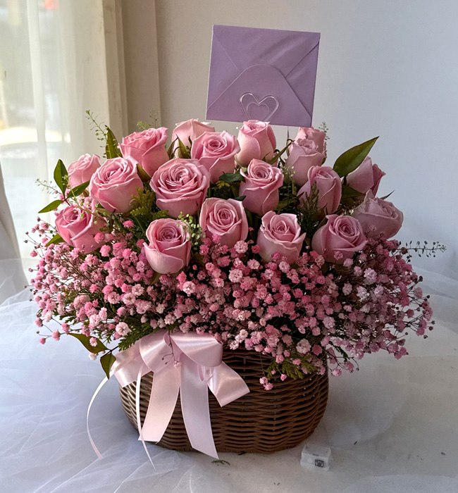 TV소개된 그 칼라안개와 핑크장미 꽃바구니
