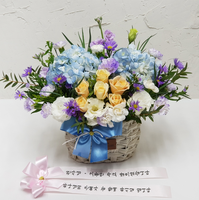 수국 장미 바구니