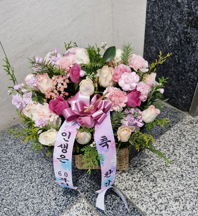 TV소개된 그 칼라안개와 핑크장미 꽃바구니