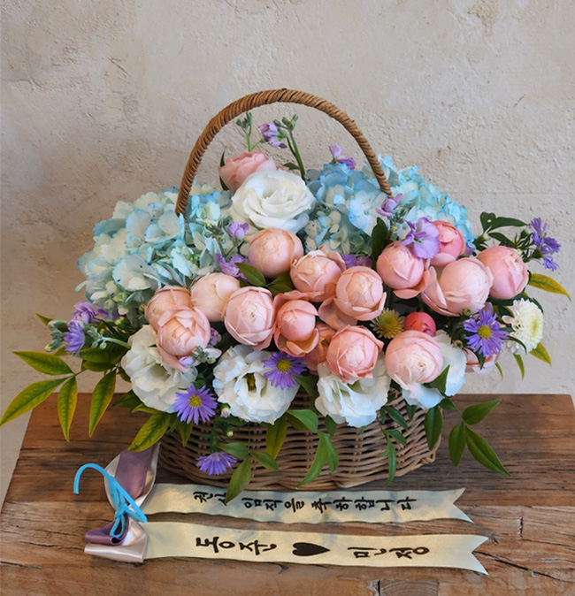 수국 장미 바구니