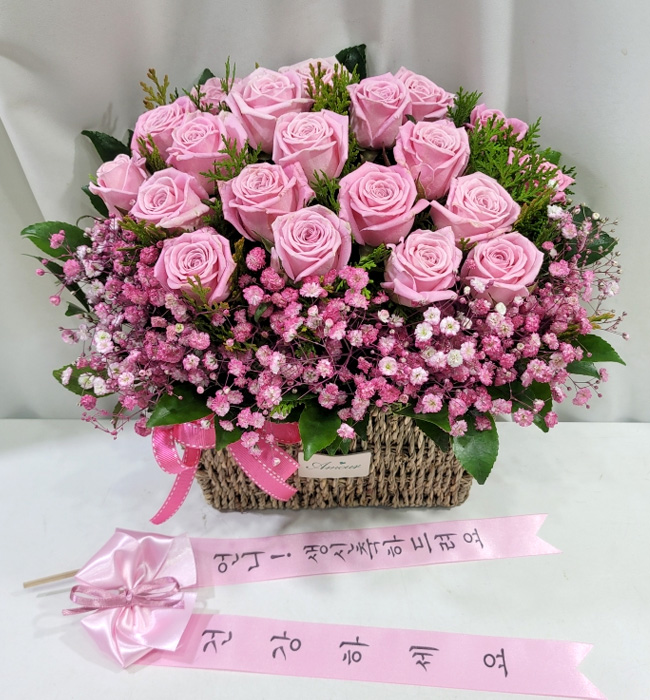 TV소개된 그 칼라안개와 핑크장미 꽃바구니