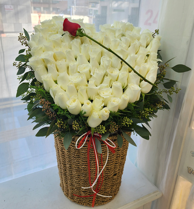백장미100송이 하트 꽃바구니