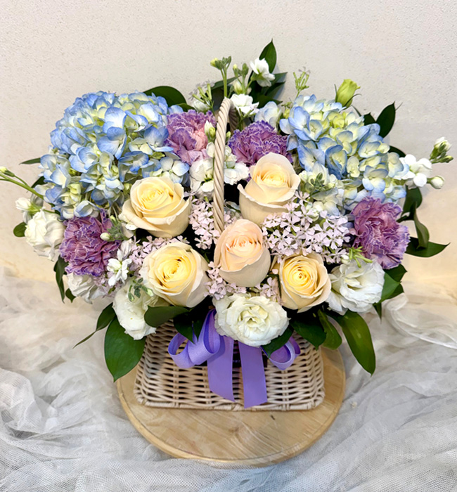 수국 장미 바구니