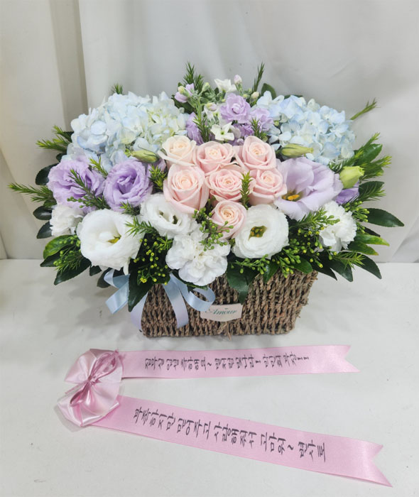 수국 장미 바구니