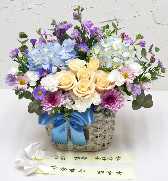 수국 장미 바구니