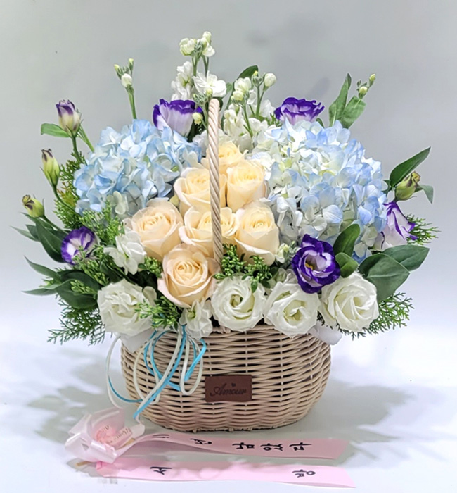 수국 장미 바구니