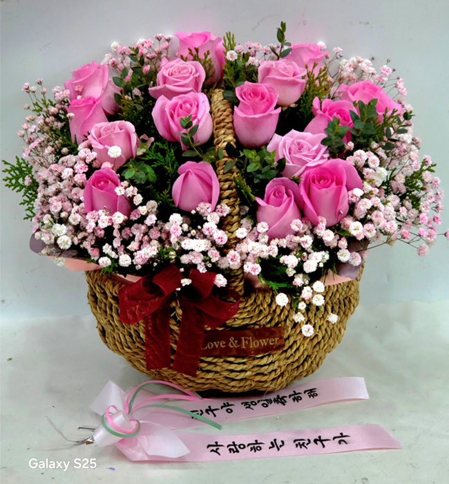 TV소개된 그 칼라안개와 핑크장미 꽃바구니