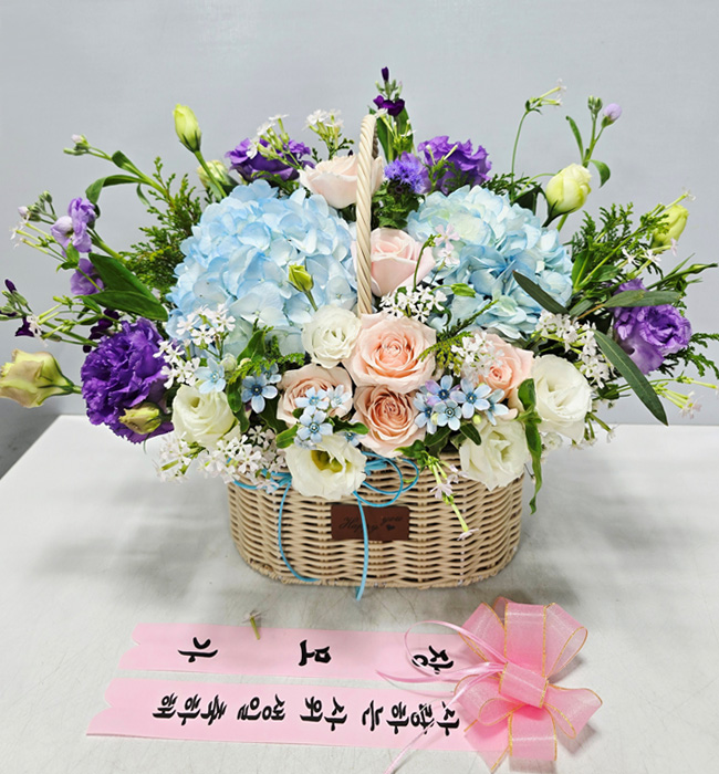 수국 장미 바구니