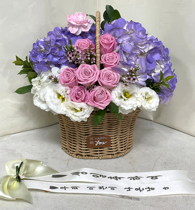 수국 장미 바구니