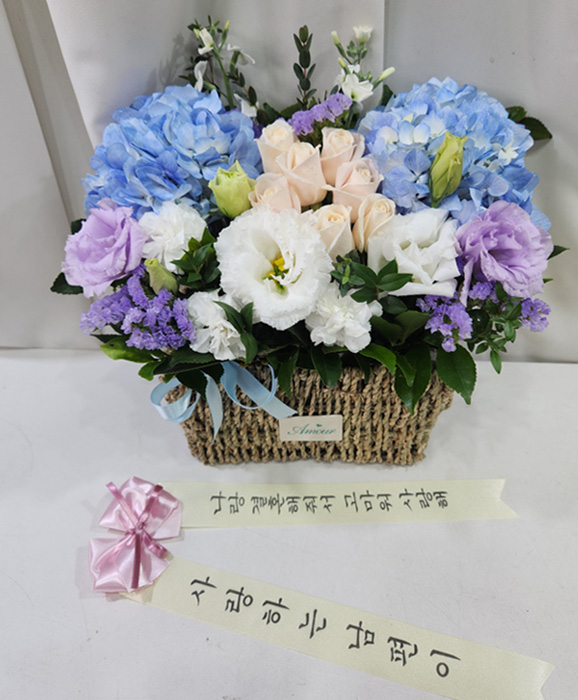 수국 장미 바구니