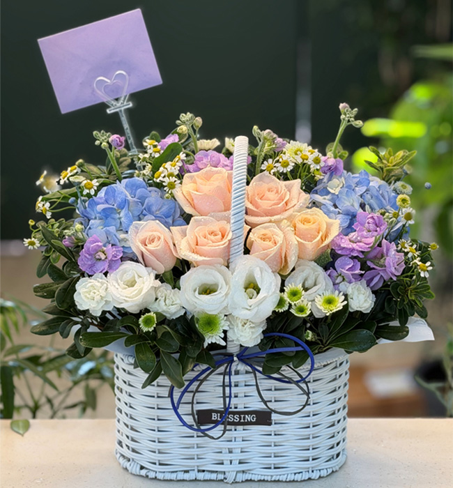 수국 장미 바구니