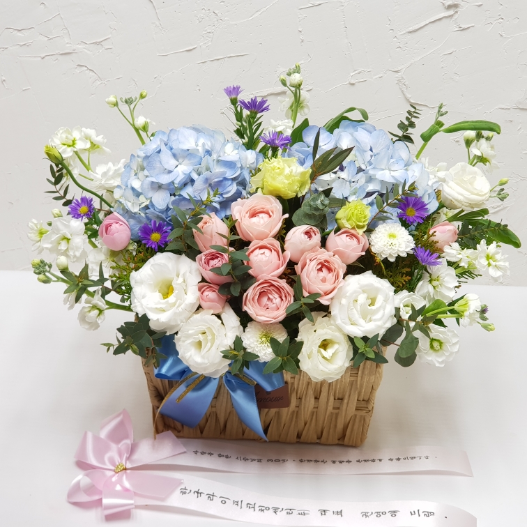 수국 장미 바구니
