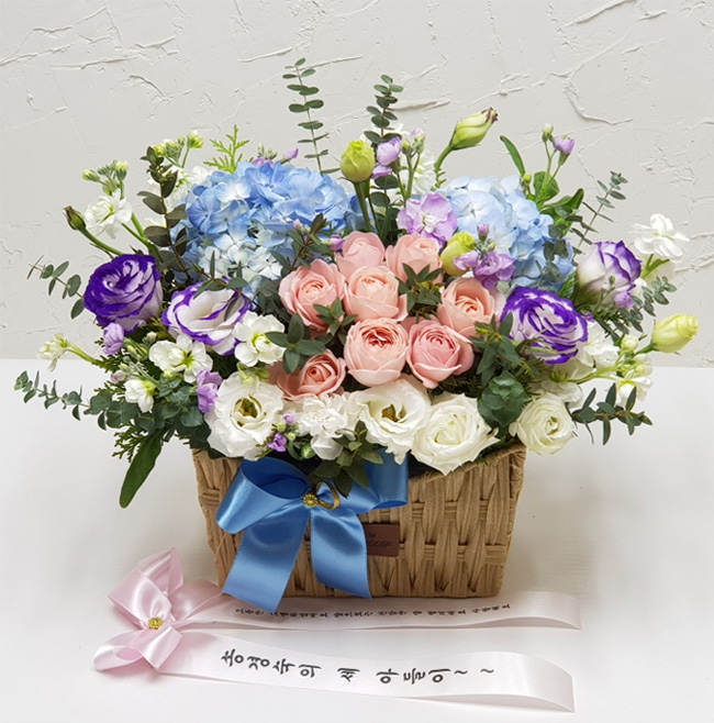 수국 장미 바구니