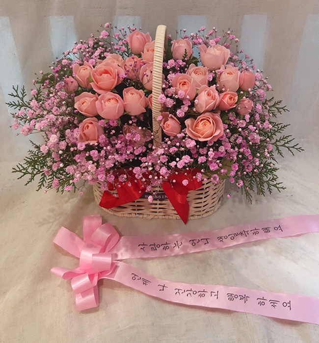TV소개된 그 칼라안개와 핑크장미 꽃바구니