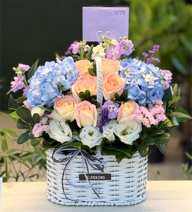 수국 장미 바구니