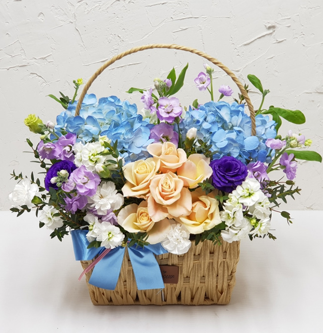 수국 장미 바구니
