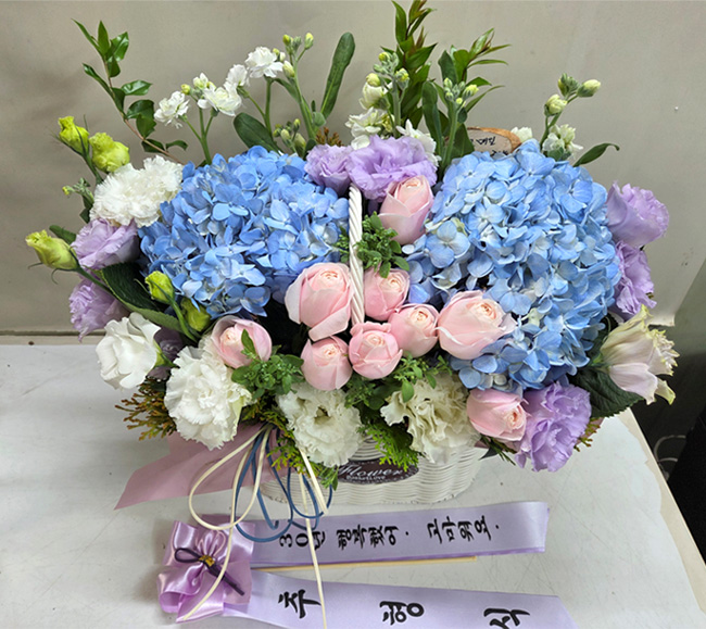 수국 장미 바구니