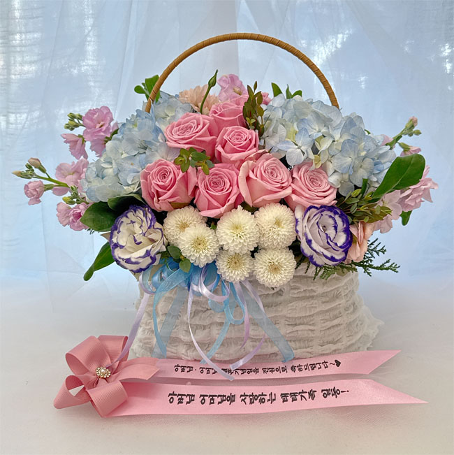 수국 장미 바구니